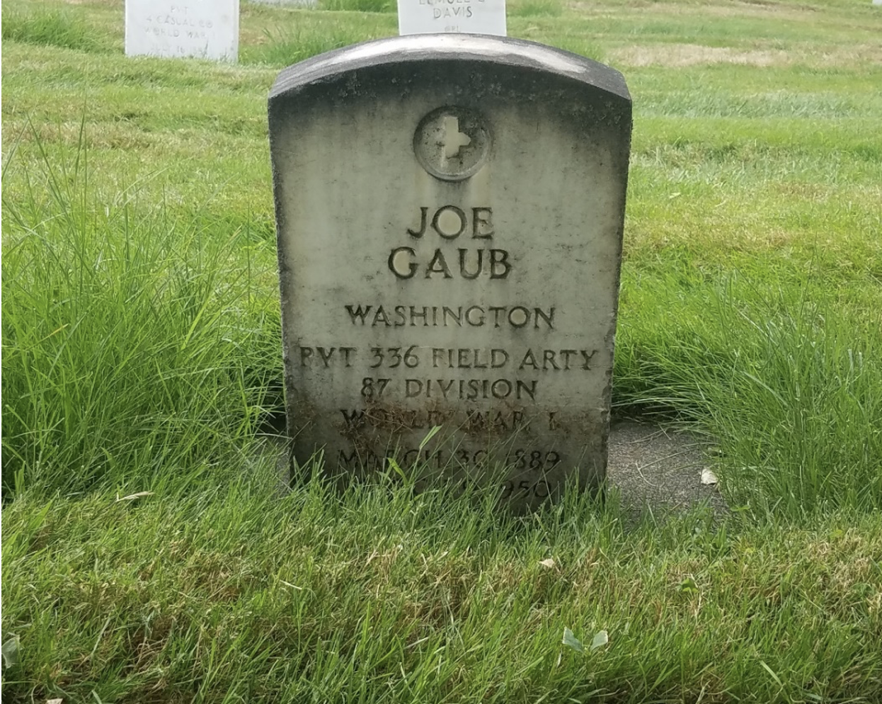 Example of a stone marker in need of cleaning in Mountain View Cemetery, Walla Walla, Washington.